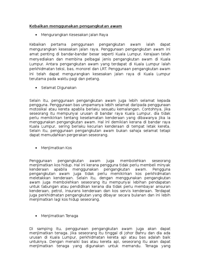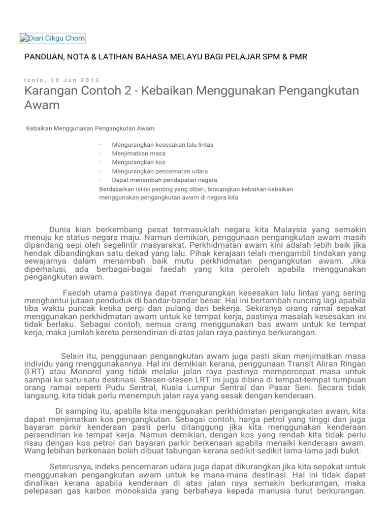 Diari Cikgu Chom Karangan Contoh 2 Kebaikan Menggunakan Pengangkutan Awam Pdf